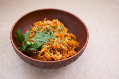 - Інгредієнти: Мікс салату, чері, глазурована куряча печінка, хурма, рукола, печериці смажені, медово-гірчична заправка